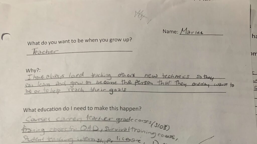 Hello! My name is Marlee Tremblay, and for as long as I can remember, I have dreamed of becoming a teacher. One of the earliest memories of this dream came from kindergarten, when my teacher first set up a mock classroom center. Every day, I would pretend to be the teacher at this center, confidently leading my peers and announcing that I one day become a teacher. At home, I would line up my stuffed animals (and sometimes my little brother!) and teach them everything I had learned at school that day. As I grew older, that passion never faded. I naturally gravitated toward helping others, finding joy in creating moments of understanding and building connections. I began to recognize the importance of empathy, patience, and listening skills that would later shape how I view teaching. To me, being a teacher is about far more than delivering content. It’s about building trust, creating inclusive environments, and helping every student feel that they belong and are valued.