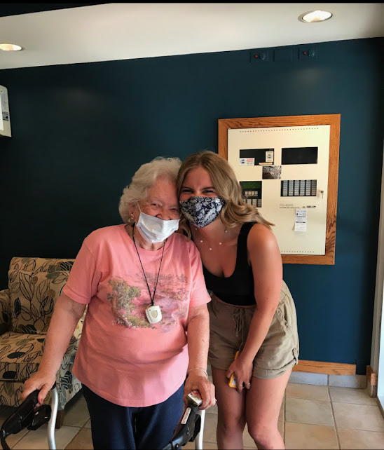 A photo of my Nana and I at her retirement home in Penticton where I would work and spend my time in during the summers. She still lives in the home and my favorite thing is to visit with her.