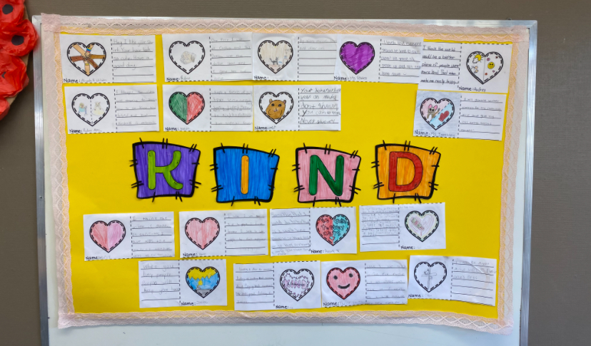 This is what my first semester practicum class (grade 5/6’s) created. On each square is an idea of how they will spread kindness.